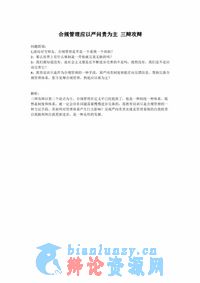 合规管理应以严问责为主三辩攻辩问题组别:1;请问对方辩友,合规管理是不是一个系统一个体制?2:那么世界上有什么体制是一开始就完美无缺的吗?3:我们都知道没有,连社会主义都是在不断进步完善的不是吗,既然没有,我们是不是应该完善它?4:教育培训只是作为合规管理的一种手段,而严问责制度却能正向反馈信息,帮助完善合规管理体系......