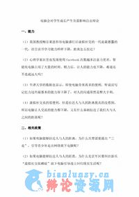 电脑会对学生成长产生负面影响自由辩论
